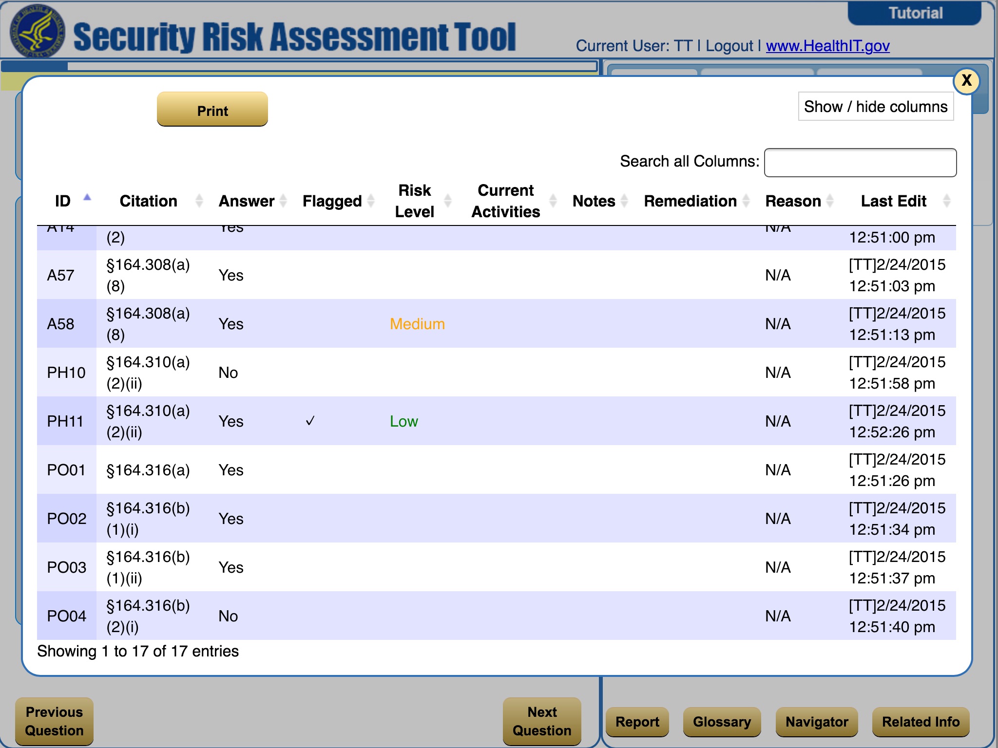 Once you have answered all of the questions (or even if you are part way through), an easy to use report is generated that organizes your responses into an easy to use format: